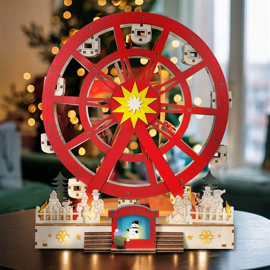 LED dřevěný vánoční kolotoč s elektro motorem se při zapnutí roztočí a rozsvítí. Tato krásná dekorace bude ozdobou každé domácností, zejména pokud jsou v ní dětí.