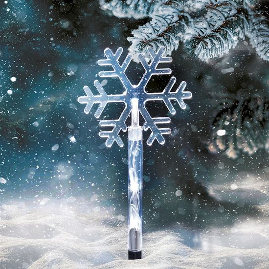 LED zapichovací zahradní svěhové vločky osvítí vaší zahradu či truhlík. Napájení vloček je na baterie. Snadno je tak umístíte tam, kam potřebujete. Vločky jsou vhodné pro vnější použití.