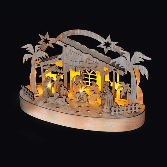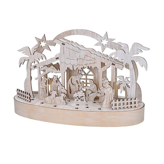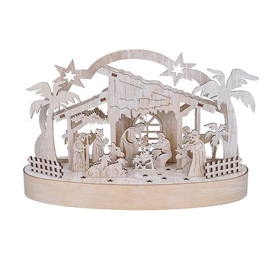 Vyřezávaný betlém v barvě přírodního tepla je krásným doplňkem vánoční výzdoby vašeho domova. Betlém má podsvícení v odstínu teplé bílé barvy. Má časovač, který šetří baterie.