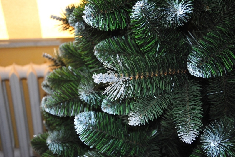 Borovice stříbrná je zdobená stříbrným brokátem. Zdobení je nedílnou součásti stromku.