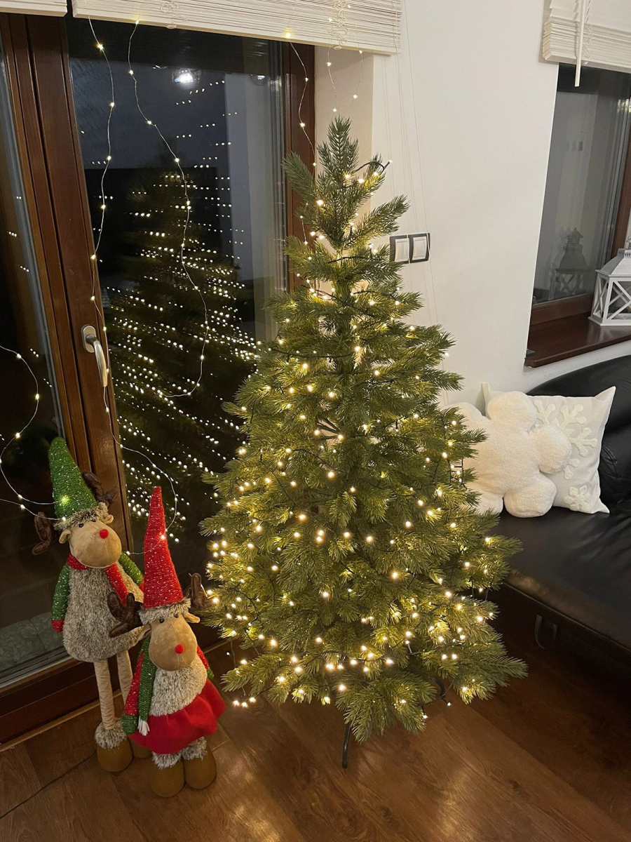 Výška a šířka stromečku se měří ve smontovaném stavu, viz fotografie vpravo (ilustrační foto).