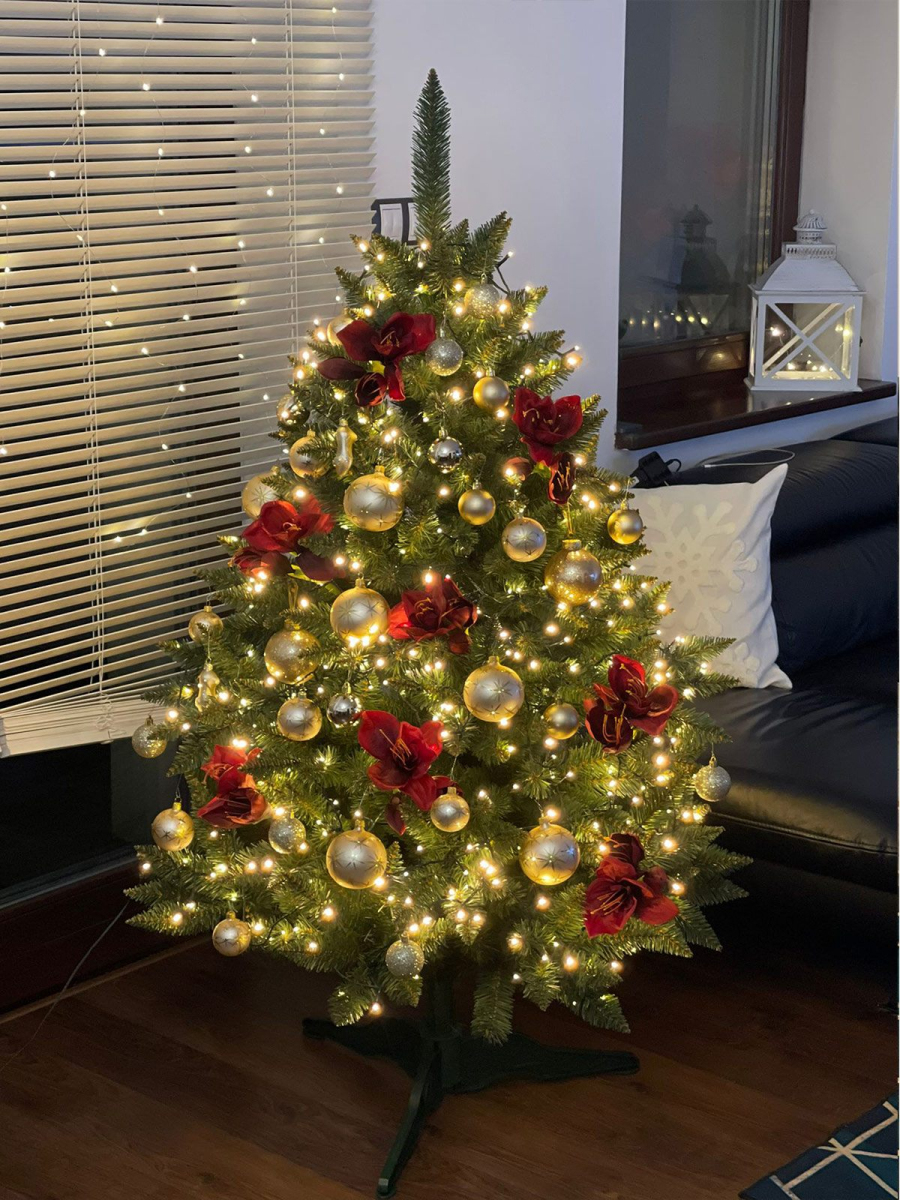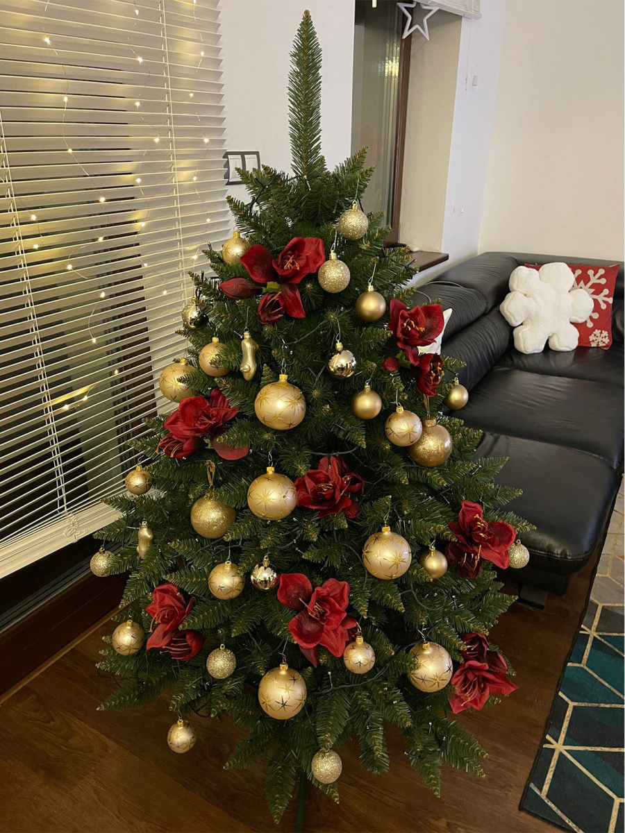 Výška a šířka stromečku se měří ve smontovaném stavu, viz fotografie vpravo (ilustrační foto).